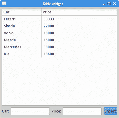 在底部,有两个文本小部件和一个按钮。 插入到文本小部件中的数据将插入到新表项的单元格中。